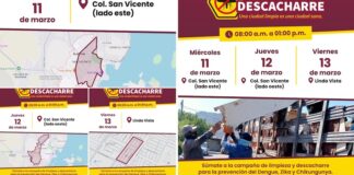 Guaymas, Sonora.- Para reforzar las medidas preventivas y evitar casos de dengue, zika y chikungunya, del 11 al 13 de marzo habrá Jornada de...