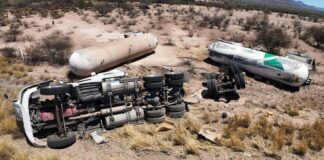 Atienden autoridades accidente de pipa con amoníaco en la carretera Guaymas-Hermosillo