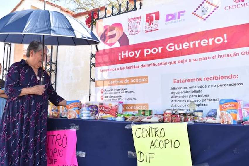Mantienen Ayuntamiento y DIF municipal centros de acopio para apoyar a damnificados de Acapulco, para recabar productos alimenticios, agua y otros artículos.