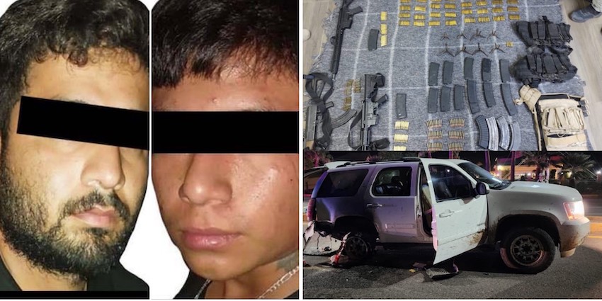 Detienen a 2 sujetos con armamento, en Altar; traían consigo 3 fusiles de salto, cartuchos, cargadores, ponchallantas y chalecos balístico.