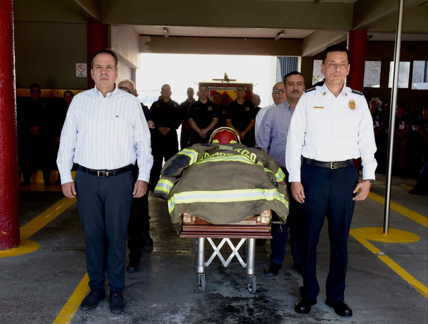 Rinden guardia de honor a bombero Alejandro Duarte Jáquez; Antonio Astiazarán asistió al último pase de lista, donde reconoció su labor a favor de la comunidad y expresó sus condolencias a su familia.
