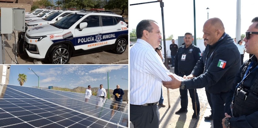 Inicia Toño Astiazarán sistema fotovoltaico y de almacenamiento en electrolinera de la Comandancia Cortijo; la Fundación BASE donó 30 mil dólares gracias a un proyecto de la Agencia de Energía y Cambio Climático.