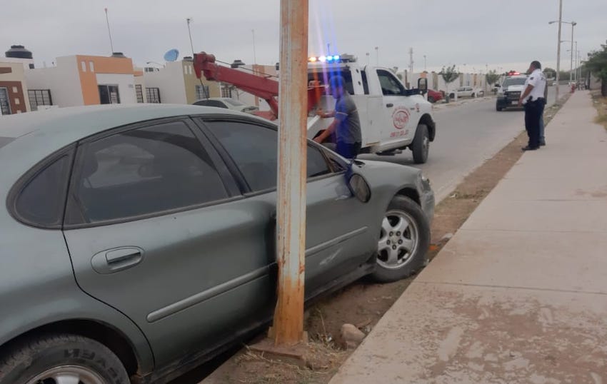Se impacta vehículo contra un poste; ocurrió en Prado Bonito; atienden a 2 mujeres con crisis nerviosa.