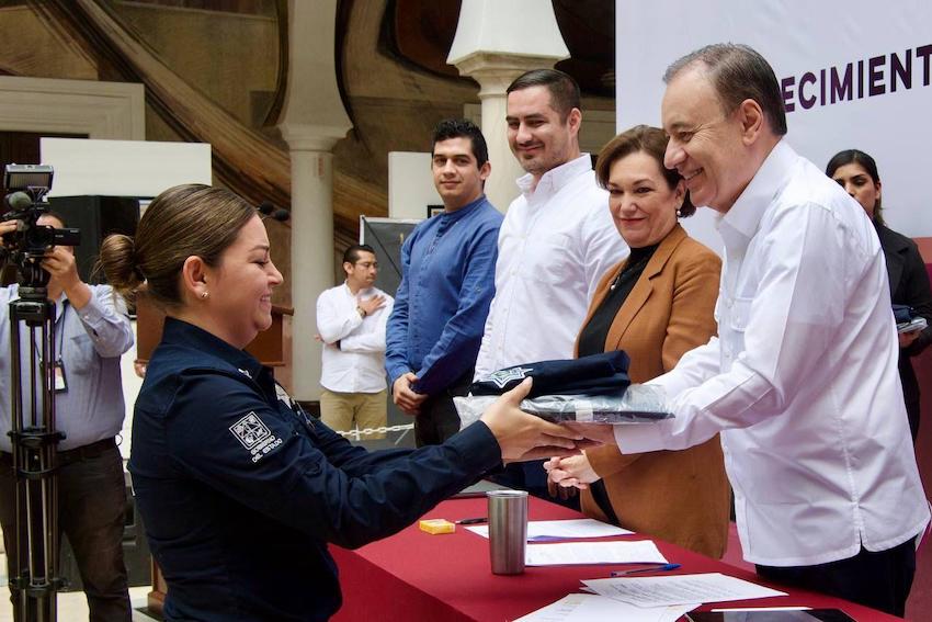 ‘Fortalecemos la seguridad pública con policías certificados, equipamiento y mejores sueldos’: Alfonso Durazo; con la entrega de 497 becas para las hijas y los hijos de los elementos de seguridad del estado, uniformes y equipo táctico a policías.