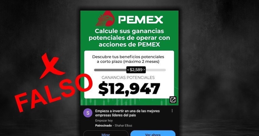 Detectan anuncio falso que oferta acciones financieras en PEMEX; autoridades hacen un llamado para prevenir que personas sean víctimas de un fraude.