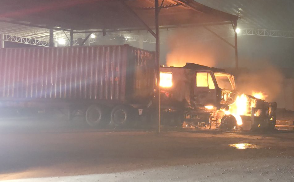 Se incendió tráiler, al sur de Empalme; siniestro ocurrido anoche, en la carretera internacional.