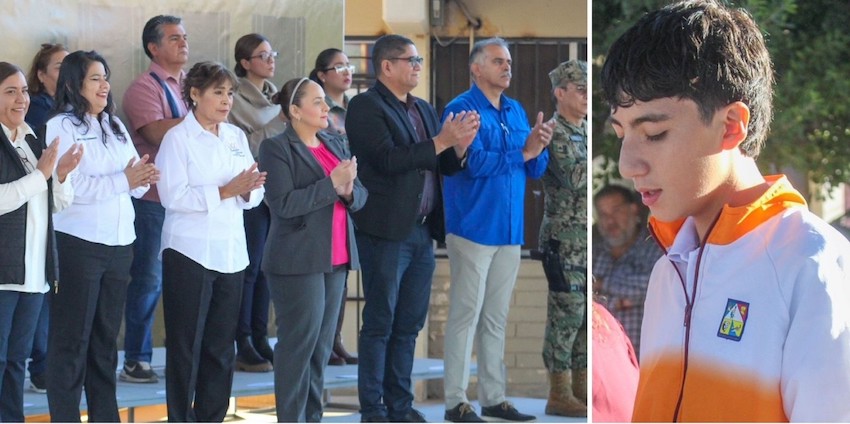 Realiza Ayuntamiento de Guaymas lunes cívico en el Centro de Atención Múltiple 08, como parte del compromiso de la Doctora Karla Córdova González para fortalecer entre los estudiantes el valor y respeto de los símbolos patrios.