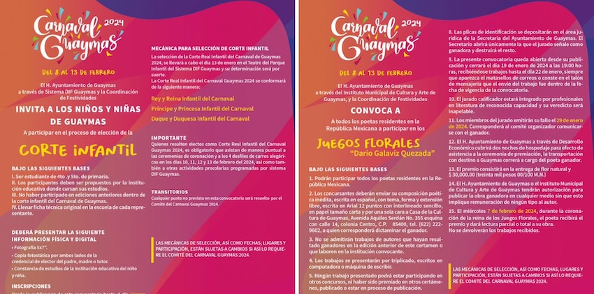 Invitan a participar en los Juegos Florales ‘Dario Galavíz Quezada’; convocan también a formar parte de la Corte Infantil del Carnaval Guaymas 2024.