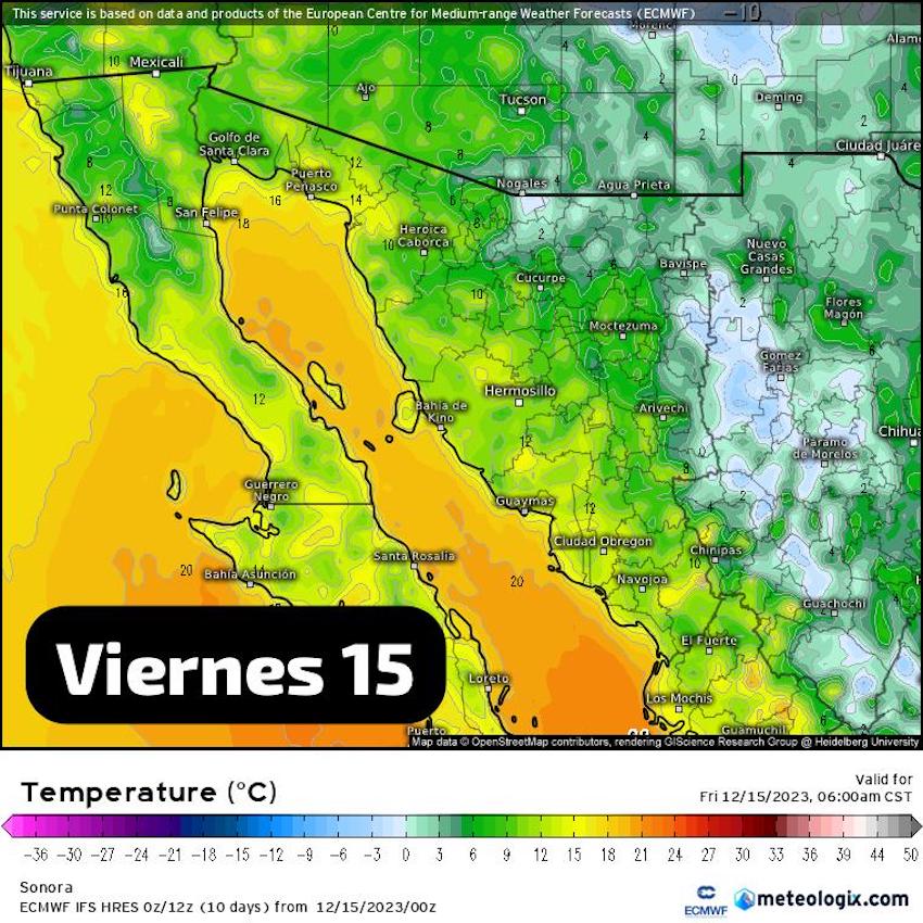 Pronóstico del tiempo para este día viernes; temperaturas máximas de entre 19 a 29 grados, sin posibilidad de lluvia en Sonora.