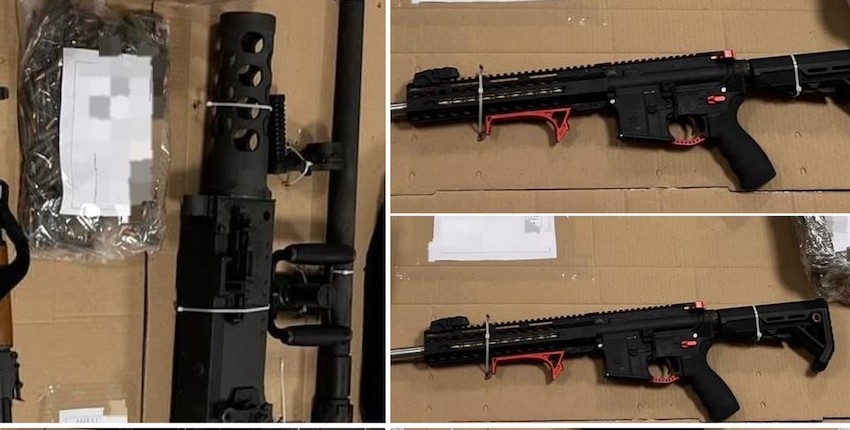 Aseguran vehículo robado con armas de fuego en el poblado Miguel Alemán; había armas de fuego, entre estas un calibre 50, otra M4 y una AK-47, diversos cargadores y más de mil cartuchos.