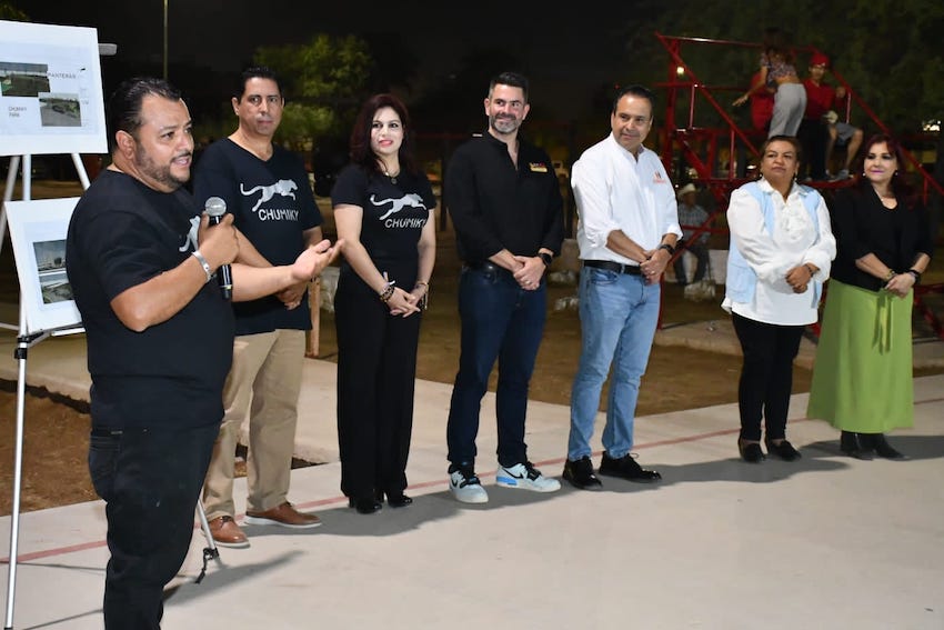 Rescatan Toño Astiazarán y Visión 34 Parque Chumiky en Floresta; el Presidente Municipal constató la instalación de ejercitadores de calistenia, mejoras a la iluminación y limpieza que dieron vida a un parque abandonado por años.