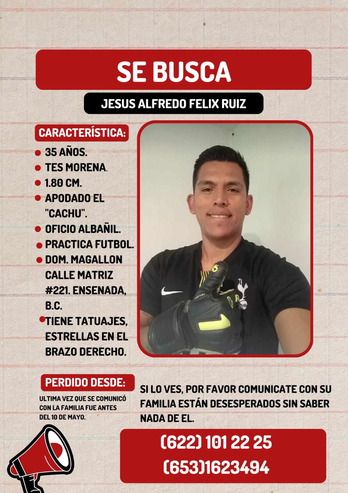 Desaparece empalmense en Ensenada, BC; Jesús Alfredo Félix Ruiz, es buscado por sus familiares.