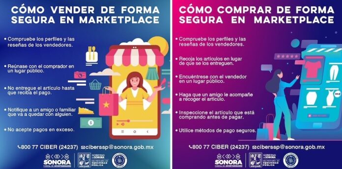 Hermosillo, Sonora.- Para impulsar la cultura de prevención de delitos cibernéticos, la Secretaría de Seguridad Pública (SSP) de Sonora comparte información de utilidad a personas que compran y venden por Facebook Marketplace.
