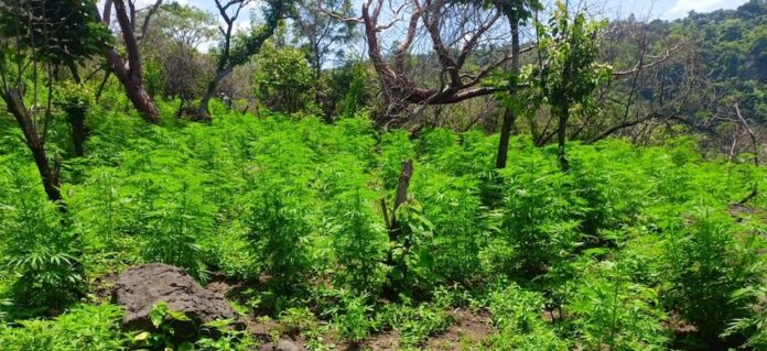 Guadalajara, Jalisco.- En cumplimiento de la Estrategia Nacional de Seguridad, en el estado de Jalisco, integrantes de la Guardia Nacional (GN) localizaron y destruyeron tres plantíos de posible marihuana donde crecían plantas de más de dos metros de altura.