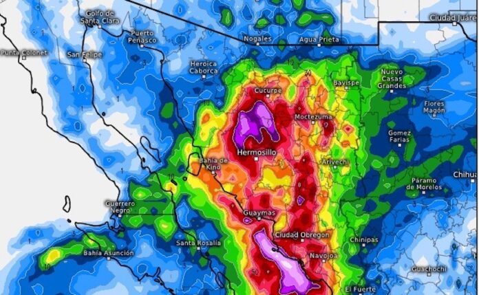 No obstante, sus bandas nubosas aportarán bastante humedad al estado de Sonora originando lluvias de fuertes a muy fuertes en todo el territorio Sonorense en el periodo que comprende los días 04 al 07 de septiembre. A su vez, generará rachas de viento fuertes (+60 km/h) y oleaje de 2.5 a 3 metros de altura sobre las costas del sur de Sonora durante el día viernes.