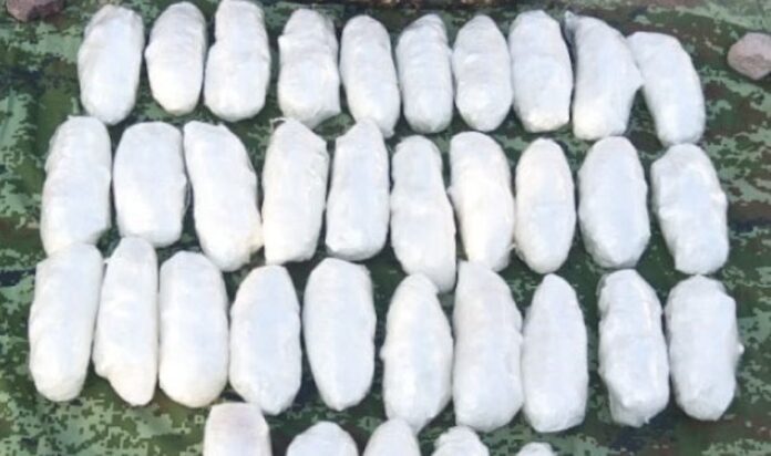 Al efectuar una revisión a los automotores, encontraron 35 paquetes con cristal, con un peso de 15 kilos 750 gramos.
