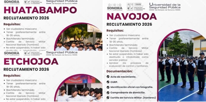 Como parte de esta jornada, la Secretaría de Seguridad y Protección Ciudadana (SSPC) Sonora, a través de la USP, visitará municipios del sur del estado para captar nuevos perfiles interesados en sumarse a la generación “Esparta”. Las fechas programadas son: Huatabampo el 8 de abril, Etchojoa el 9 de abril y Navojoa el 10 de abril.