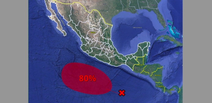 Ciudad de México.- El Servicio Meteorológico Nacional (SMN) avisó este domingo del aumento al 80% en la probabilidad de formación del primer ciclón tropical de la actual temporada de huracanes en el océano Pacífico.
