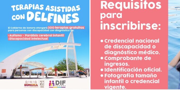 Guaymas, Sonora.- El Gobierno del Estado de Sonora, a través del Sistema DIF Sonora en coordinación con DIF Guaymas, invita a participar en la convocatoria para el Programa de terapias asistidas con delfines.