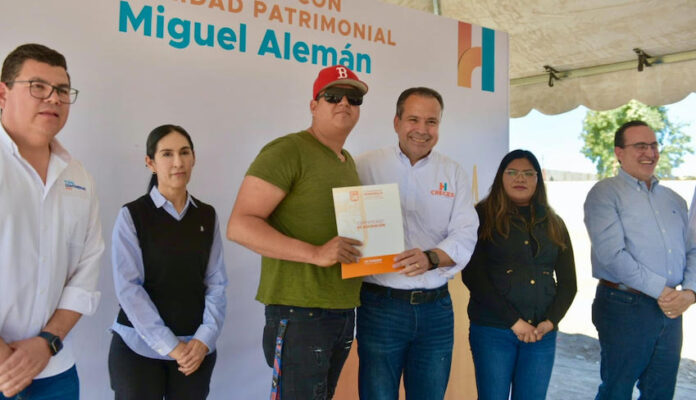 Acompañado por Luis Ernesto Nieves Robinson Bours, titular de Promotora Inmobiliaria de Hermosillo entregó este documento que garantiza la estabilidad, desarrollo y calidad de vida de familias que durante años lucharon por un lugar para habitar.