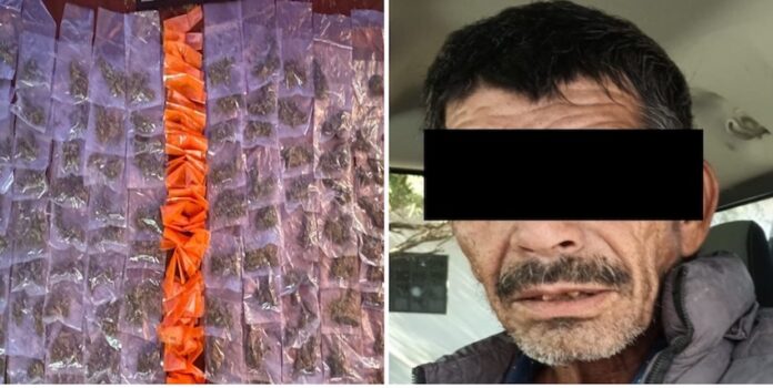 El aseguramiento se registró durante los patrullajes de vigilancia del lunes 24 de noviembre en San Pedro El Saucito, donde se efectuó la detención de Adalberto “N”, de 59 años de edad, al sorprenderlo en posesión de 180 envoltorios con sustancia prohibida.
