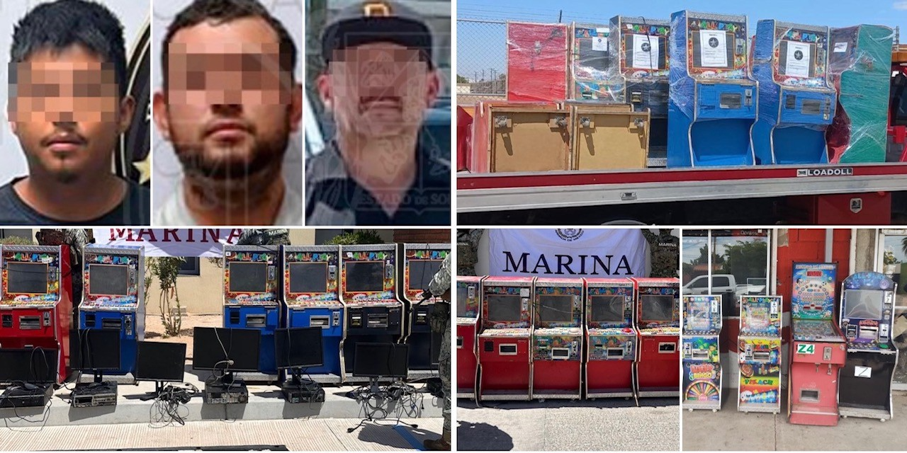 #SONORA Aseguran 34 máquinas “tragamonedas”, en cateos realizados en Hermosillo, Cajeme y San Luis Río Colorado.