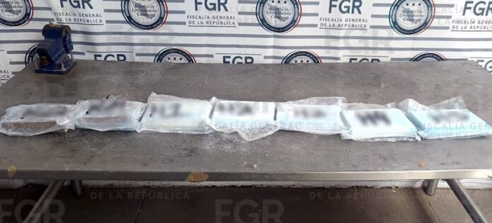Durante la revisión, las autoridades aseguraron siete paquetes que contenían en conjunto seis kilos 935 gramos de fentanilo, los cuales fueron asegurados y puestos a disposición del Ministerio Público Federal (MPF), quien realiza los trámites legales correspondientes para proceder conforme a derecho corresponda.