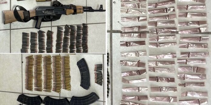 De acuerdo con la Carpeta de Investigación, elementos de la Agencia Ministerial de Investigación Criminal (AMIC), en San Luis Río Colorado, Sonora, localizaron y aseguraron 53 envoltorios que contenían metanfetamina, cuatro envoltorios con marihuana, un arma de fuego, nueve cargadores y 422 cartuchos.