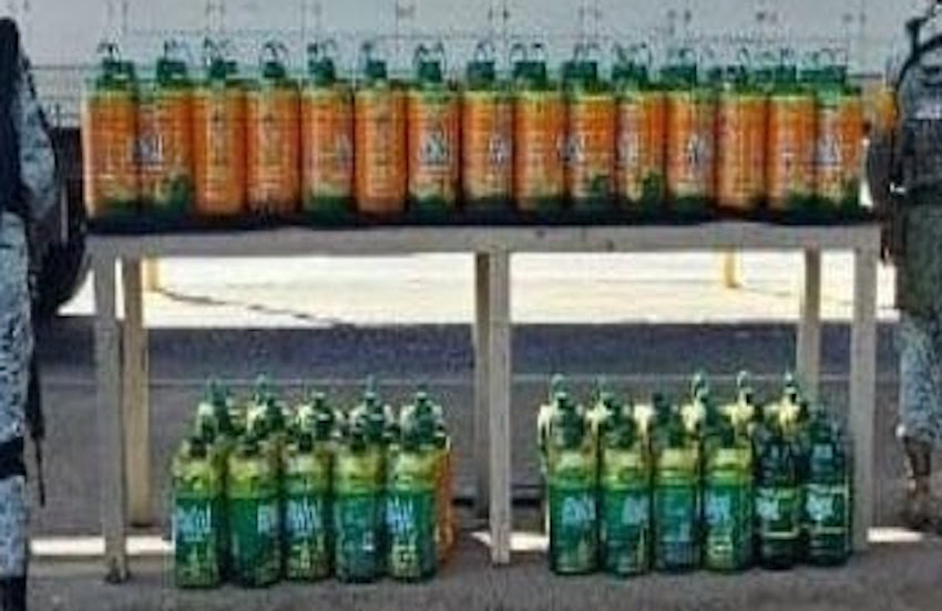 #SLRC Aseguran cargamento de metanfetamina líquida; poco más de mil litros, en 120 garrafones, que iban ocultos en artículos de limpieza transportados en un tráiler, cuyo chofer quedó detenido.