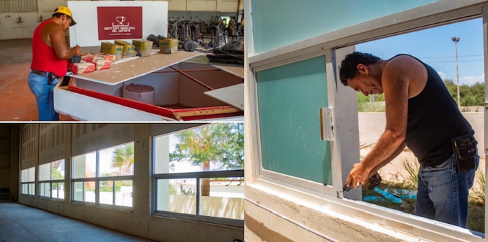 Entre las acciones se destaca la rehabilitación del pabellón de gimnasia, baños públicos con mobiliario y equipamiento, conexión a red de agua y drenaje, en campo 3 de futbol, la construcción de cerco perimetral, pasto sintético, gradas metálicas y alumbrado, en general con la colocación de 13 postes con lámpara de panel solar, cableado y centro de carga, en campo 2 de softbol la rehabilitación del cerco metálico a base de malla ciclónica, la construcción de puente peatonal en canal de la milla, rampas de acceso, así como la construcción de cancha de pádel con concreto, cerco, alumbrado y pintura.