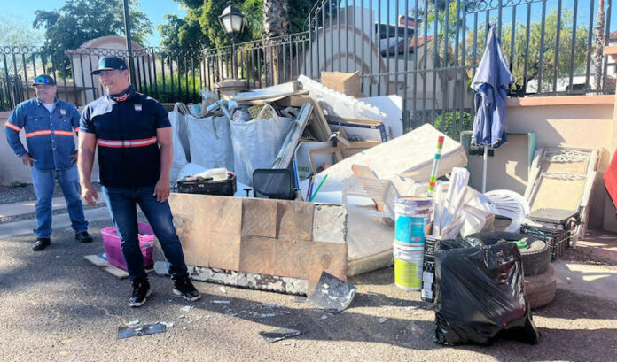 Hermosillo, Sonora.– Para proteger la salud de la ciudadanía y prevenir enfermedades transmitidas por vectores, el Gobierno Municipal realizó una jornada de descacharre y fumigación en las colonias Villa Bonita, Montecarlo y Valle del Lago, donde se retiraron 31 toneladas de artículos en desuso.