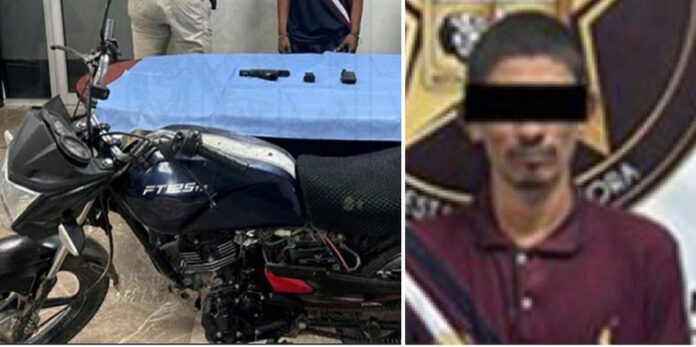 El detenido fue identificado como Jonathan Guadalupe “N”, de 21 años, al momento de la detención, se le aseguró un arma corta marca Glock, calibre .45, con un cargador abastecido, un radio de comunicación de color negro, una motocicleta de color azul con franja blanca, sin número de serie.