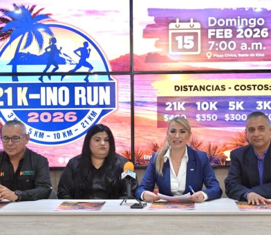 Hermosillo, Sonora.-Autoridades municipales, organizadores y representantes de la comunidad de Bahía de Kino anunciaron la realización de la tercera edición de la carrera “21K-ino Run”, que se llevará a cabo el domingo 15 de febrero, a partir de las 7:00 horas, en la playa de Bahía de Kino. La directora...
