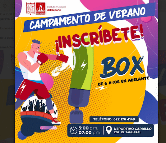 Empalma, Sonora.- El Ayuntamiento, que encabeza el alcalde Luis Fuentes Aguilar, a través del Instituto Municipal del Deporte, dio inicio al Campamento de Verano de Box, que se estará llevando a cabo del 21 de julio al 4 de agosto en el Deportivo Carrillo, ubicado en la colonia El...
