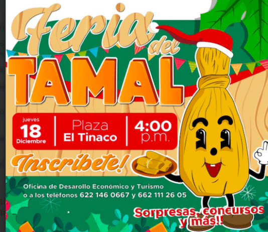 Empalme, Sonora.- Consolidada como una tradición local, la ‘Feria del Tamal’ llega a su cuarta edición, organizada por el Ayuntamiento que preside el alcalde Luis Fuentes Aguilar a través de la Dirección Municipal de Desarrollo Económico y Turismo. El evento se llevará a cabo el próximo jueves 18 de diciembre...