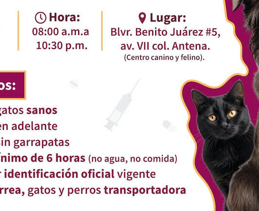 Guaymas, Sonora.- Para promover el bienestar de nuestras mascotas y control de la población animal, el Ayuntamiento de Guaymas a través de Desarrollo Social y la Dirección de Salud Pública Municipal te invita a la Jornada de Esterilización Canina y Felina del 03 al 07 de marzo.