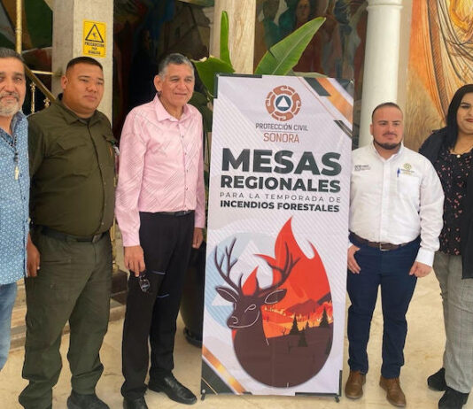 Empalme, Sonora.- El alcalde Luis Fuentes Aguilar y Martín Moreno Egurrola, coordinador de Protección Civil Municipal, participaron en una reunión convocada por la Coordinación Estatal de Protección Civil (CEPC), para tratar el tema de los incendios forestales.