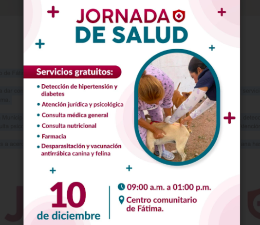 Guaymas, Sonora.- Para dar continuidad al trabajo preventivo en las colonias y comunidades así como proporcionar servicios gratuitos, este próximo 10 de diciembre habrá Jornada de salud en el Centro Comunitario del sector Fátima. Austria Castro Gracia, directora de Salud Pública Municipal, explicó que la actividad consiste en acercar consulta...