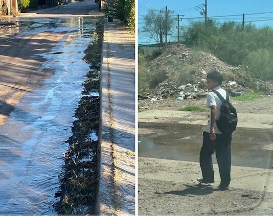 Guaymas, Sonora.- A continuación la manifestación de protesta de padres de familia y personal docente de la Escuela Secundaaria Técnica Número 59, de la colonia Fátima, en Guaymas, por enome fuga de drenaje que tiene ya bastante tiempo, sin que ninguna autoridad le haya dado importancia hasta ahora. “𝗛𝗼𝘆 𝗻𝘂𝗲𝘀𝘁𝗿𝗮...
