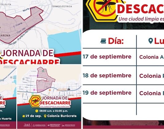 Guaymas, Sonora.- A retirar cualquier tipo de cacharros de patios y mantener una ciudad limpia, invita el Ayuntamiento de Guaymas a las familias de las colonias Adolfo de la Huerta, Punta Arena y Burócrata. Austria Castro Gracia, directora de Salud Pública Municipal, comentó que mediante esta actividad donde participa también...