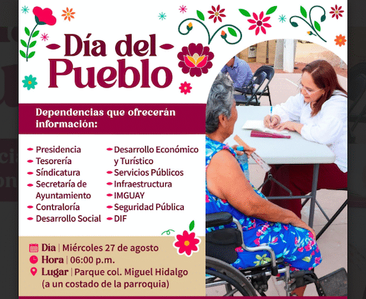 Guaymas, Sonora.- Este miércoles, el Ayuntamiento de Guaymas te invita a participar en el programa nacional “Día del Pueblo” que se realizará en el parque de la colonia Miguel Hidalgo (a un costado de la parroquia), a partir de las 18:00 horas. Encontrarás módulos de atención de Presidencia, Tesorería, Sindicatura,...