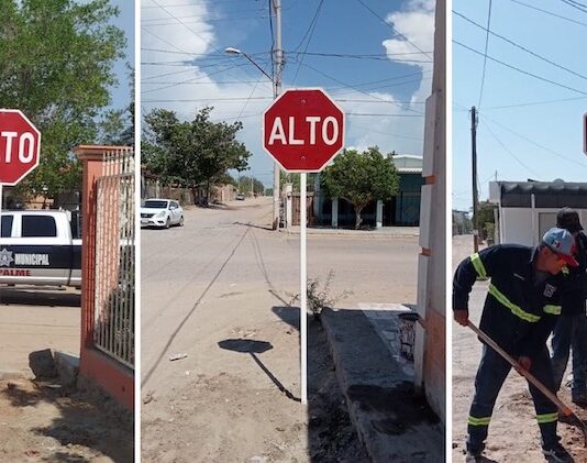 Empalme, Sonora.-Por instrucciones del alcalde Luis Fuentes Aguilar, y en atención a la solicitud de los vecinos del sector, la Jefatura de Tránsito Municipal llevó a cabo la instalación de señalamientos viales en los cruceros más transitados de la colonia Jordán.