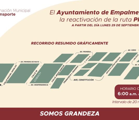 Empalme, Sonora.- En respuesta a una petición que la comunidad usuaria había hecho al alcalde Luis Fuentes Aguilar, y luego que la Coordinación Municipal de Transporte sostuvo acuerdos con concesionarios del servicio colectivo, a partir del próximo lunes 29 de este mes de septiembre se va a reactivar la...
