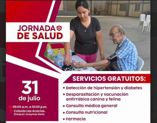 Guaymas, Sonora.- Para mantener acercamiento con las familias y llevar directamente a las colonias los servicios que ofrece el Ayuntamiento de Guaymas a través de Desarrollo Social y Salud Pública Municipal, este jueves 31 de julio habrá jornada de salud en el parque de la colonia las Acacias. Los residentes...