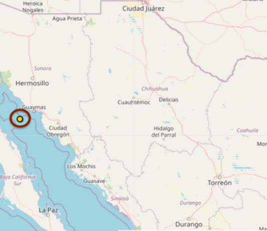 Guaymas, Sonora.- A medianoche se dejó sentir un temblor en Guaymas, según informe oficial que presenta el Servicio Sismológico Nacional (SNN). El sismo ocurrió a las 00:23 horas (tiempo del centro de México), a 64 kilómetros al suroeste de la ciudad. Se presentó en aguas del Golfo de California, a 10...