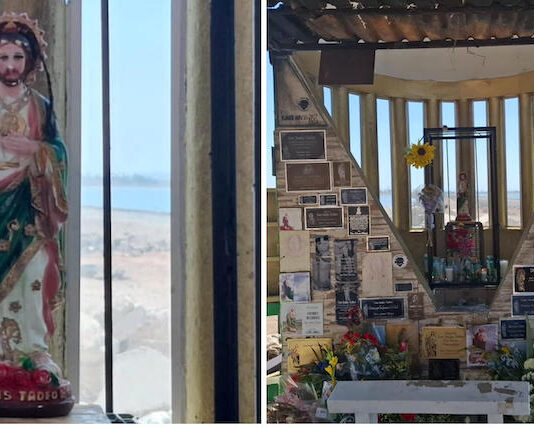 Guaymas, Sonora.- Tras incendio provocado, habían colocado el santo en bulto pequeño, no del tamaño que siempre se ha tenido en la capilla instalada a un costado de la carretera internacional, tramo Guaymas-Empalme. El lugar ha sido incendiada, vandalizado, en varias ocasiones, y la imagen de bulto de San Juditas...