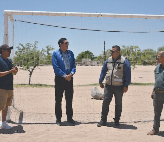 Empalme, Sonora.- Como parte del compromiso por dignificar los espacios públicos, el alcalde Luis Fuentes realizó una visita al ejido Mi Patria es Primero, acompañado por David Mendoza Rivas, coordinador general de CECOP, y el contralor municipal Leobardo Olmos.