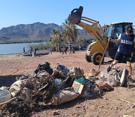 Guaymas, Sonora.- La Secretaría de Marina a través de la Armada de México, por conducto de la Segunda Región Naval, informa que hoy, personal naval continúa participando en la “Campaña Nacional de Limpieza de Playas y Costas” en el Puerto de Guaymas, Sonora.