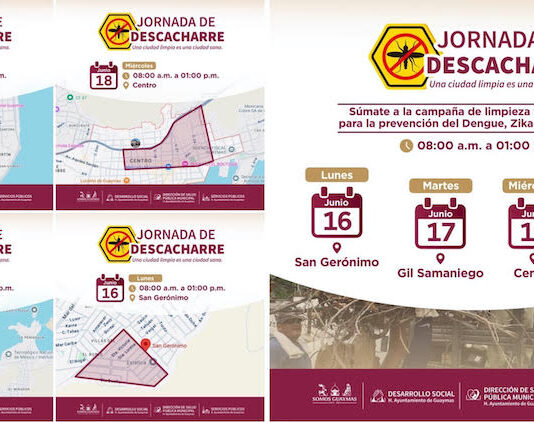 Guaymas, Sonora.- Con el propósito de prevenir enfermedades como el dengue, zika y chikungunya, el Ayuntamiento de Guaymas, a través de las dependencias de Desarrollo Social, Servicios Públicos y Salud Pública Municipal, llevará a cabo una Jornada de Descacharre del 16 al 19 de junio, informó Austria Castro Gracia. La...