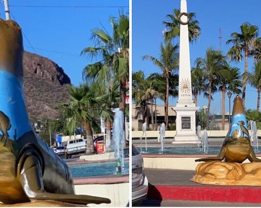 Guaymas, Sonora.- Esta tarde fue instalada una escultura de lobo marino en el obelisco de Guaymas, como parte del proyecto de embellecimiento urbano impulsado por la Administración del Sistema Portuario Nacional (ASIPONA), en colaboración con artistas locales. La figura, elaborada en fibra de vidrio por el escultor guaymense Abelardo Parra,...